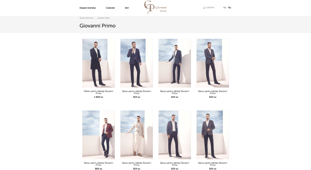 Timp de 7 ani, îmbrăcămintea pentru bărbaţi, fabricată sub marca Giovanni Primo, definește gustul impecabil şi succesul celor care o poartă. Pantalonii bărbăteşti şi sacourile sunt confecţionate conform tendinţelor modei europene şi mondiale. Stilul italian excelent este orientat spre bărbaţii de succes, care au reușite în afaceri şi viaţa cotidiană, cei ce măsoară norocul împreună cu costumele brandului respectiv - motto-ul de bază al mărcii Giovanni Primo. Graţie statutului său înalt şi croielii de calitate, haina acestui brand a căpătat o popularitate enormă în rândul tinerilor.