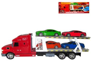 Trailer cu 4 masini cu lumina si muzica 55X21X13cm