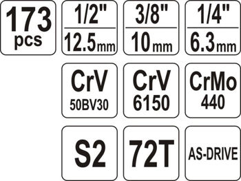 1/2"; 1/4“; 3/8“;