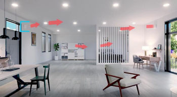 Așa funcționează transferul slab de căldură – până la 80% din energia termică dintr-un sistem de încălzire sau aer condiționat este stocată și reutilizată. La fiecare 70 de secunde există fie o intrare de aer proaspăt, fie o ieșire de aer vechi. Ambele contribuie la bunăstarea și sănătatea ta!