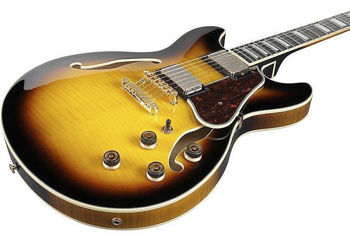 Chitara electrică Ibanez AS93FM AYS este o chitară semi-acustică concepută pentru a cânta aproape orice gen muzical. Pickup-urile sunt montate direct pe blocul central pentru a spori sustainul si a elimina feedback-ul.Chitara electrica Ibanez AS93FM AYS in Antique Yellow Sunburst. Blat de arțar de flacără / spate și laterale de arțar de flacără niato/arțar, panou din abanos Macassar, pickup-uri Super 58.