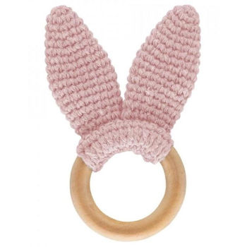 651 Jucarie dentitie din bumbac cu inel din lemn Amigurumi Roz