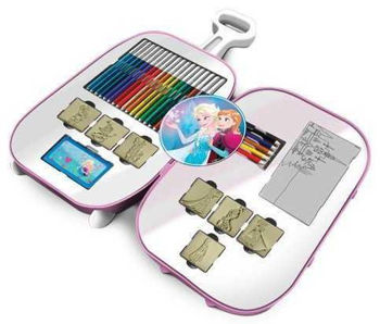 1 autocolant decorativ, 30 autocolante, 5 creioane colorate, 18 markere colorate Fila Giotto Turbo, 1 caiet, 7 timbre, 1 vopsea albastra