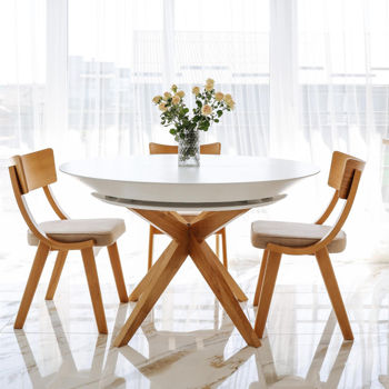 Masa Nova Furnir Italian White+Wood, o piesă excepțională de mobilier care îmbină eleganța designului italian cu calitatea superioară a materialelor.
