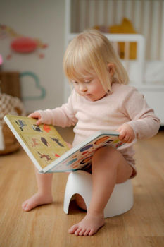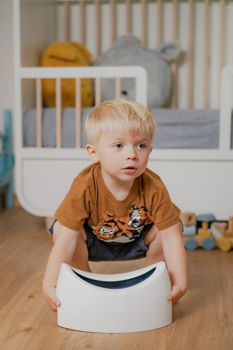 Olita concepută practic are o formă ergonomică și a fost dezvoltată de o echipă de kinetoterapeuți, părinți și designeri. Olita are o distanță ideală față de sol atunci când micuțul tău stă pe olita, permițându-i să adopte o poziție confortabilă și responsabilă.