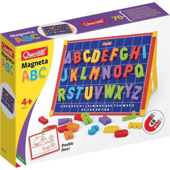 Magneta ABC este o placă magnetică pe două fețe: o parte este o suprafață metalică pentru literele magnetice, iar cealaltă este o tablă albă pentru a scrie și trage cu orice marcator de ștergere uscată. Datorită celor două suporturi de șevalet mic, placa poate fi poziționată vertical cu înclinația corectă. Acest set de jucării magnetice a fost conceput special pentru a determina copiii să se angajeze să-și scrie primele cuvinte într-un mod distractiv și ușor.