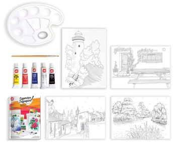Cu Atelierul de Pictura "Acuarelă: Peisaje" poti simti un adevarat artist! Oferind posibilitatea de a patrunde in lumea artei, si de a petrece placut si productiv timpul liber. Perfect pentru oricine, indiferent de varsta, nivel de experienta sau calificare. Acesta poate fi utilizat atat acasa, cat si la scoala. Uneltele si vopselele din set, va vor insoti in minunata lume a culorilor, iar creatiile finale pe panzele din set vor constitui un cadou minunat pentru cei dragi sau un element de decor unic! Tematica setului Peisaje.