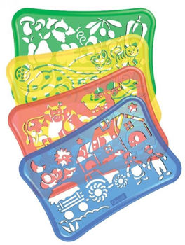 12 markere, 1 caiet de schițe, 1 trusă cu stilou, 4 șabloane tematice, 1 capac translucid