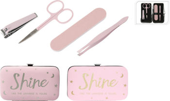 În set sunt incluse: Foarfece; Pensetă; Pilă; Clește pentru unghii