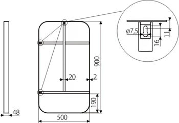 Oglindă Gamet SR49-500-900-L2-K1 GT/1buc Rama cu oglinda