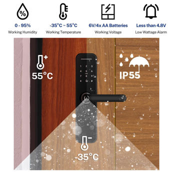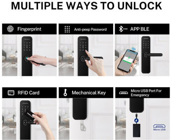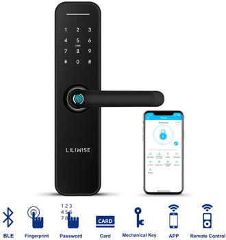 funcții - amprentă digitală, parolă, card, cheie, deblocare la distață; utilizare - ușă de lemn, ușă de oțel, ușă de securitate, ușă de alamă
