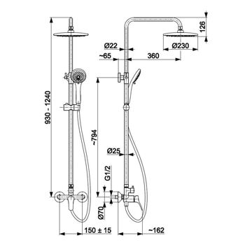 pălărie duș; pară duș; furtun duș; bară;