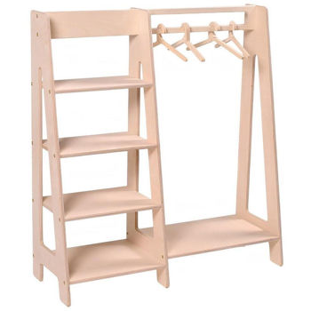 Să ai o garderobă pentru copii proprie, organizată corespunzător, în care totul este accesibil în funcție de înălțimea copilului, este primul pas spre a-ți îmbrăca copilul în mod independent. Un dulap Montessori vă va ajuta să vă învățați copiii să se îmbrace singuri și să-și păstreze camera în ordine. În același timp, un suport de podea pentru haine dezvoltă nu numai independența, ci și te învață să gândești logic, să iei decizii și să faci alegeri. Toate acestea presupun dezvoltarea copilului conform sistemului Montessori. Dulapul pentru copii este împărțit în două secțiuni cu umerase și rafturi care sunt liber accesibile pentru copil. Inaltimea suportului pentru copii permite copilului sa ajunga chiar si pe cel mai inalt raft fara ajutorul adultilor. Fiecare detaliu al cuierului de podea este gândit până la cel mai mic detaliu, astfel încât să fie convenabil pentru copilul dumneavoastră să pună lucrurile la locul lor. Un mini dulap se va potrivi perfect in interiorul unei camere pentru copii si va deveni un punct de atractie pentru bebelusul tau. Fabricat din placaj de mesteacăn durabil, de calitate premium. Toate părțile dulapului pentru îmbrăcămintea pentru copii sunt lustruite cu grijă și au o suprafață netedă, fără așchii sau rugozități.