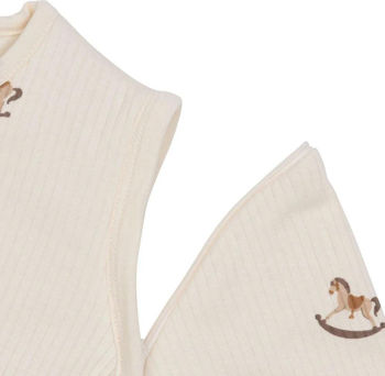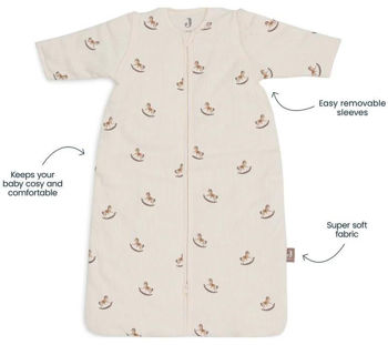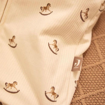 Pentru un plus de siguranță și comoditate, sacul de dormit este echipat cu un fermoar practic, care facilitează îmbrăcarea și dezbrăcarea rapidă. Dacă este nevoie de mai multă căldură, îl poți combina cu una dintre păturile moi Jollein.