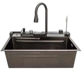 sita de scurgere, placa de taiere, masina de spalat sticla, bol universal cu dop de scurgere, dop de scurgere, robinet, bol perforat, dozator de sapun, accesorii de instalare