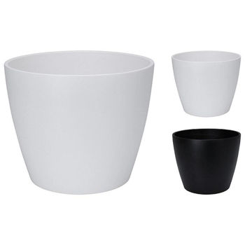 Ghiveciul pentru flori din ceramică, cu o înălțime de 16 cm și un design bicolor negru/alb, este o alegere elegantă și versatilă pentru a-ți expune plantele preferate.
