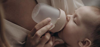 Tetina de biberon Lovi Mammafeel are o suprafață mată, moale și imită pielea mamei, textura și sensibilitatea acesteia.