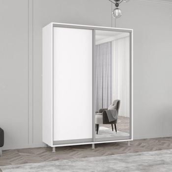 Aron cu uși glisante din oglindă și PAL (150x60x240H cm) Alb Brilliant