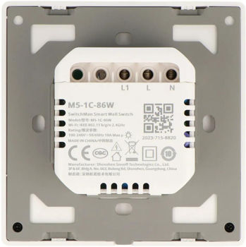 Matter Wi-Fi Smart Wall Switch SwitchMan M5 1-Gang (Neutral Wire), White