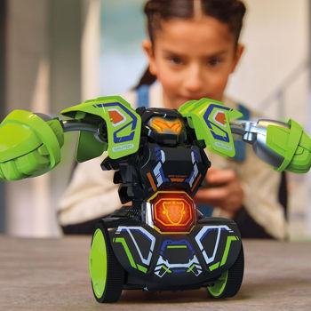Alege-ți robotul, luptă-ți adversarul cu pumni care se rotesc în stânga și în dreapta și, de îndată ce vezi LED-ul PowerBelt aprins și auzi efectele sonore incitante, lovește cu un puternic Super Tornado Punch! Poți să-i arunci armura detașabilă?