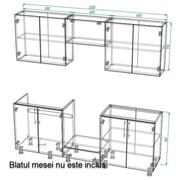 Mobilă pentru bucatarie Smartex (30055) K2 220сm Alb