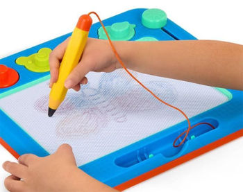 Indiferent cum vor copiii să deseneze, planșa va dezvălui culori vibrante pe măsură ce își creează mini capodoperele. Când este timpul pentru o nouă creație, ei pot glisa pur și simplu mânerul în jos pentru a face desenul existent să dispară! Această jucărie de desen pentru copii este colorată, robustă, iar creionul este atașat la tablă, astfel încât să nu se piardă.