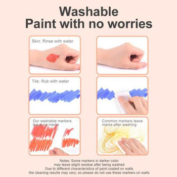 Acest set de markere lavabile este special creat pentru copii cu vârsta de 4 ani și peste, oferind o experiență de desen curată și comodă fără murdărie. Markerele sunt realizate cu o formulă care facilitează curățarea și permit copiilor să-și exprime creativitatea fără grija petelor.