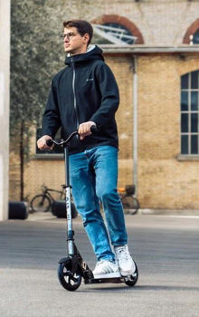 Ghidonul este telescopic si se poate ajusta in functie de inaltimea dvs. Mecanismul facil de pliere face aceasta trotineta usor de manevrat si depozitat. Dupa pliere dimensiunile trotinetei sunt de 72cm x 12cm x 33cm.