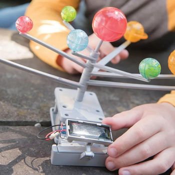 Vrei să vezi cu propriii tăi ochi cum se rotesc planetele în jurul Soarelui? Nu trebuie să mergi în spațiu pentru a face asta! Fiecare pasionat de astronomie poate acum asambla singur un model rotativ al sistemului solar. În plus, motorul funcționează atât cu o baterie AAA, cât și cu lumina soarelui.