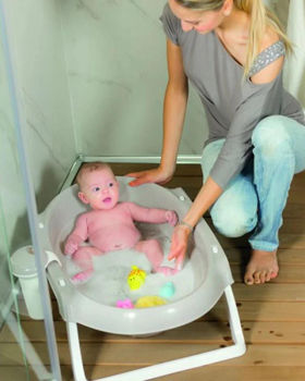 Potrivită pentru utilizare în duș, în cada pentru adulți sau pe orice suprafață stabilă