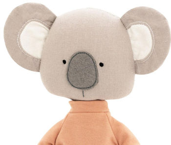 Freddy koala este cea mai prietenoasă koala din lume! Îi place să-și facă prieteni noi, să vorbească despre tot ce este în lume și să meargă mult. Freddy este îmbrăcat într-un trening, format dintr-un hanorac cu buzunar și pantaloni scurți cu guler largi. Hainele sunt confectionate din bumbac organic 100% si sunt complet detasabile.