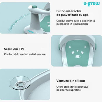 Accesoriu pentru baie U-Grow UGSB-0097-BL Scaun baie pt bebeluși cu ghidon și spătar reglabil, verde