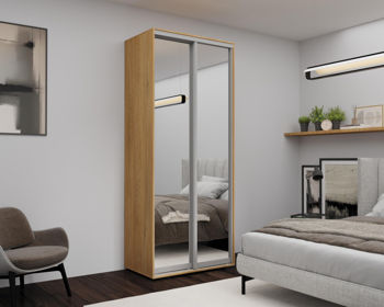 Dulap cu uși glisante, 100x60x220cm, Oglinda, Sonoma