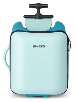 Micro Ride On Luggage Eazy Allrounder combină trei funcții esențiale într-un singur produs: troller cu scaun pentru copii, bagaj de mână și cărucior.