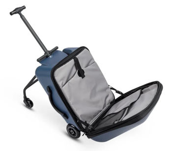 Ride On Luggage Eazy Weekender сочетает в себе три практичные функции: чемодан с сиденьем для ребенка, ручную кладь и детскую коляску.