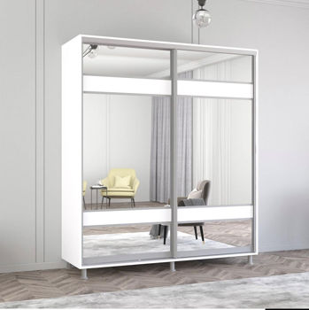 Aron-S uși glisante din PAL cu oglindă zebra (200x60x230H cm) Alb Brilliant