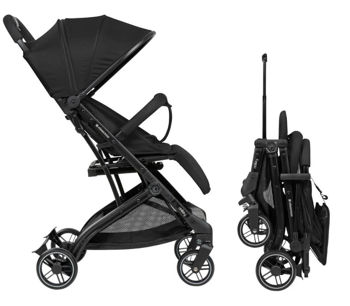 Caruciorul se pliază rapid cu o singură mână și devine extrem de compact. Mânerul integrat permite transportul ca un troler – ideal pentru călătorii.