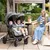 Confort personalizat: fiecare loc este prevazut cu copertina extensibila cu protectie UPF 50+ si ventilatie, spatar reglabil independent si suport moale pentru picioare.