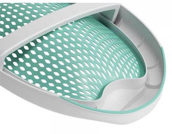 Ergonomic, acesta este realizat din cauciuc moale perforat, care crește permeabilitatea aerului și face mai ușoară clătirea acestuia.