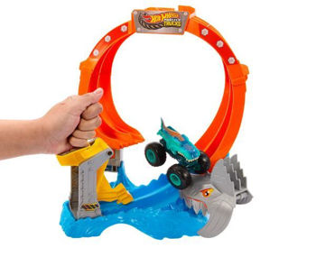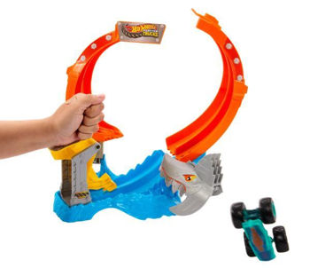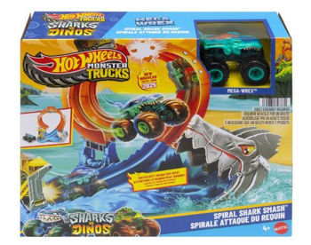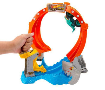 Plasează camionul Mega-Wrex la scară 1:64 în lansator și trimite-l într-o spirală amețitoare. Cu suficientă forță, va traversa bucla și va doborî rechinul, rupând pista în două. Dacă lansarea este prea slabă, camionul va fi prins în gura monstrului!