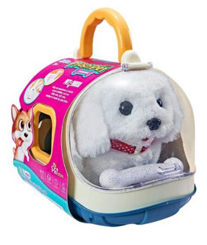 Jucăria interactivă „Cățeluș în geantă de transport cu accesorii” este un prim prieten ideal pentru copil, oferindu-i ore de joacă captivantă și dezvoltând empatia față de animale.