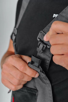 365713 Salopeta de lucru, 65% poliester / 35% bumbac, sur/negru/rosu, M