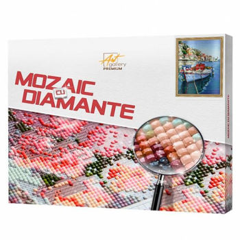 QB204443 Mozaic cu diamante patrate 40x50cm Barca langa mal