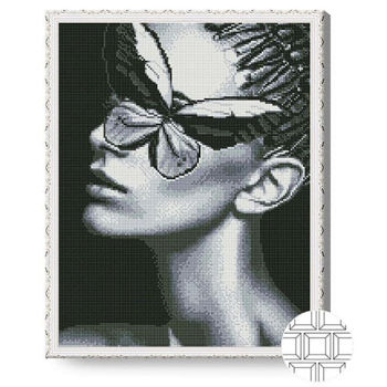 QB206050 Mozaic cu diamante patrate 40x50cm Fluturele si profilul fetei