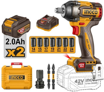 Mașină de înșurubat cu impact cu acumulator BL Motor 42V/2*2Ah 600Nm INGCO CIWLI42602 este un echipament de înaltă performanță, proiectat pentru lucrări solicitante din domeniul industrial și auto. Motorul brushless oferă putere constantă, durabilitate și eficiență energetică sporită.