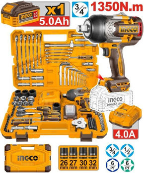 Set scule 126 piese cu cheie de impact pe acumulator, 1350Nm (CIWLI201351):
