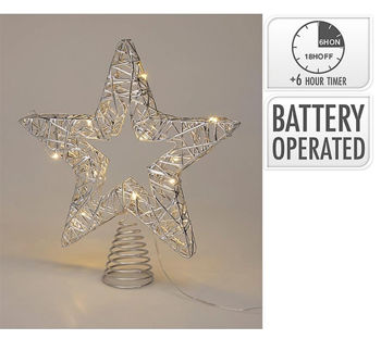 37019 Varf de brad 28cm Stea, 20LED, timer, alb-cald, argintiu