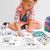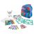 20 de foi pentru desenat - 2 foi cu șabloane - 2 foi cu autocolante - 6 markere - 6 creioane - 1 figurină de hârtie pentru desenat