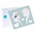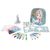 20 planșe de colorat, 2 foi cu șabloane, 2 foi cu autocolante, 6 markere, 6 creioane cerate, 1 figurină din hârtie