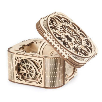 Adevarata bijuterie Ugears din noua colecție este Cutia de Comori. Modelul prezintă elemente superb gravate, care iți stârnesc curiozitatea pentru a vedea ce se află înăuntru. Totuți, doar cei care pot rezolva încuietoarea tip puzzle au acces la ea. În interiorul cutiei se pot păstra obiecte mici de valoare, sau chiar secrete personale.